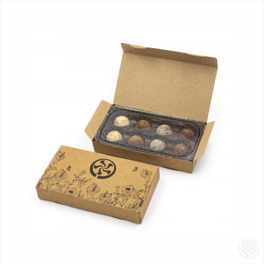 Prancūziški triufeliai aukščiausios kokybės šokolade. Pakuotė - individualios spaudos dėžutė.